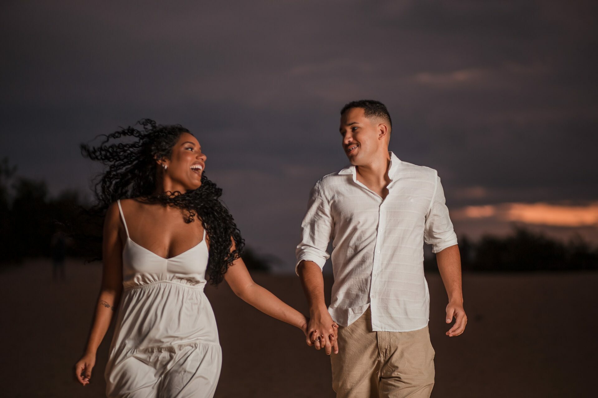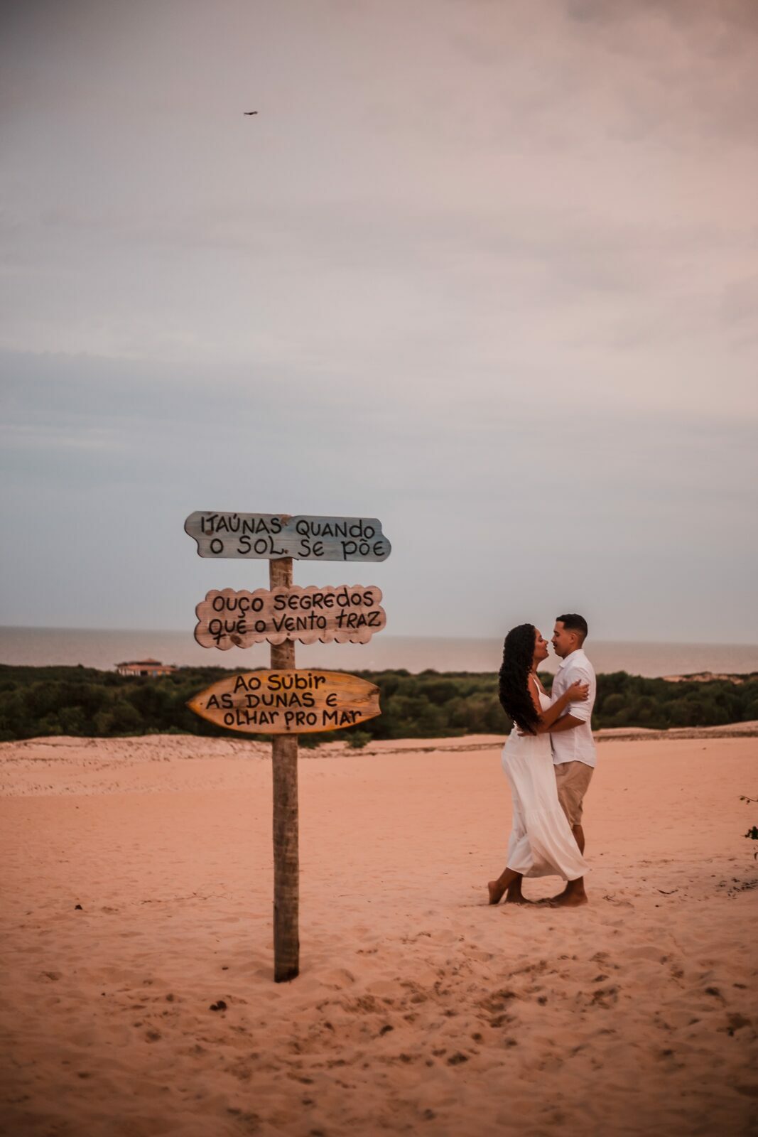 Foi um dia atípico! Os noivos tiveram imprevistos na estrada para chegar em Itaúnas, e o ensaio começou faltando 10 minutos para o por do Sol.